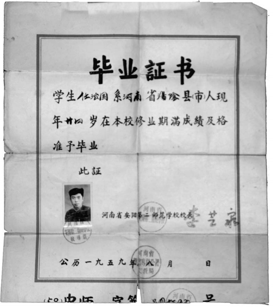 1959年安阳第二师范学校毕业证(1959年,任治国提供)